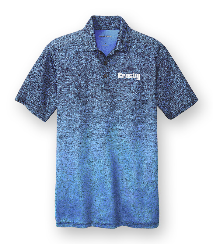 This moisture-wicking, snag-resistant polo gradually blends a heather look with an allover sublimated print for an innovative take on traditional athletic colors.